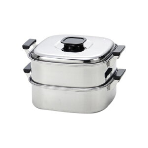 【商品詳細】 サイズ(中段):約290×290mm(深さ:約115mm)×2個 サイズ(水槽):約290×290mm(深さ:約100mm) 水槽容量:約6.3L 中段蒸量:1.2升 ×2個 材質:18-0ステンレス 原産国:日本製 ■...