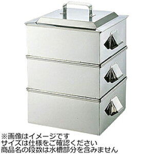 ※画像は2段です。 電磁調理器IH対応 サイズ 内寸W240×D240mm中段深さ100mm 水槽深さ75mm 取扱サイズ 2段 22cm 24cm 27cm 29cm 3段 22cm 24cm 27cm 29cm