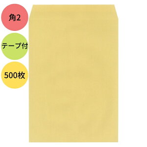 作業に便利なテープ付クラフト封筒。■商品スペック●仕様/角2、テープのり付●坪量/85g/m2●郵便番号枠/無●貼り合わせ/センター貼り●古紙配合率/40%●1セット=500。