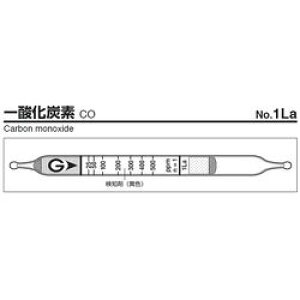 ガス検知管 一酸化炭素 (1箱) 検知管名:1La 一酸化炭素。1箱の測定回数:10。有効期限(年):3。 測定ガス名:一酸化炭素。測定範囲:8〜1000ppm。標準吸引回数(n):1。 。