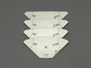 【特長】 ●軽量・薄型で携帯に便利です。 ●ゲージが短いため、板材を置いたままベベル角度の測定ができます。 ●ゲージの先端がすみ肉を避ける形状のため、より正確に脚長の測定ができます。 【仕様】 ●本体サイズ 56×48×5mm ●製品質