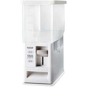 掲載しています ●計量カップがなくても、レバー1つのラクラク操作で約1合(約150g)を計れる計量米びつです。●無洗米も計量できるアダプター付きです。●10kgのお米をまるごと保存