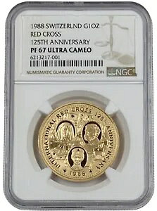 1988 Red Cross 125th Anniversary Gold Switzerland Proof 1 oz Coin NGC PF 67 UC商品について組成:金年:1988年刻印の種類:プルーフグレード:PR...