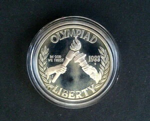 Silver 1988 Olympics $1 Commemorative Coin , Proof Strike - T26。循環/非循環 非循環。額面 $1。素材構成 モダンシルバー/クラッド。1988年ストライクタイプ...