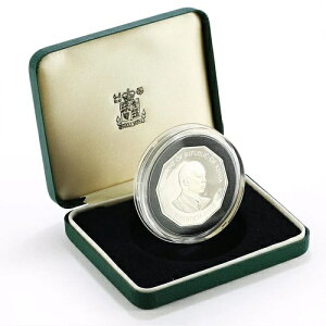 Independence President Moi Ag coin 1988。微細な傷のあるコイン、カプセル、ケース付き(写真をご確認ください)。認証:未認証。発行年:1988年。素材:銀。流通/非流通:非流通。額面:500シリング...