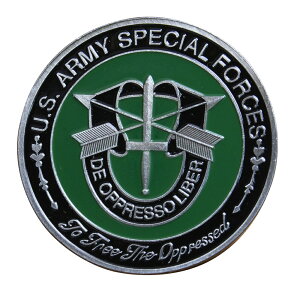 記念コイン グリーンベレー 紋章米陸軍と特殊部隊の記章が刻まれたチャレンジコイン仲間意識や団結心を向上させるために隊員に与えられる表彰アイテム、米陸軍特殊部隊の記章がデザインされたチャレンジコインです。表面は米陸軍特殊