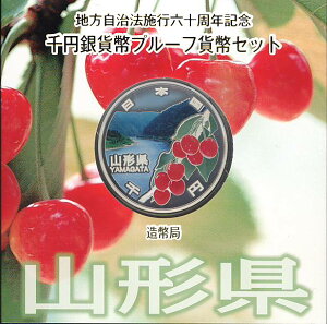 地方自治法施行60周年シリーズ 山形県1000円プルーフ銀貨Bセットです。 ○ 最上川とさくらんぼをデザインしています。 ※最上川:全長229kmの一級河川。江戸時代には、河口にある酒田湊で日本海海運と結びつき...
