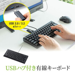 USB3.2ポートとUSB2.0ポートのハブを内蔵したコンパクトキーボード。※箱にキズ、汚れがありますが商品は新品です。<特長>●テンキー部分を取り除き、文字入力だけに特化したコンパクトキーボードです。●USB3.2 Gen1(USB...