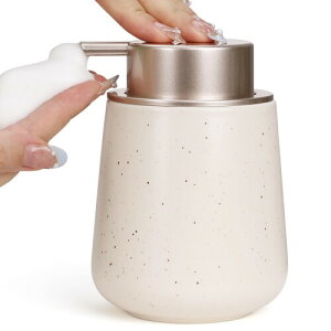 ポンプ:プラスチック サイズ:幅12*高さ9.5cm 容量:400ml 重量:約400g ポンプタイプ:泡 【セラミック製ソープボトル】高品質のセラミックのボトル、プラスチック製より洗いやすく劣化しません。砂釉の釉面工