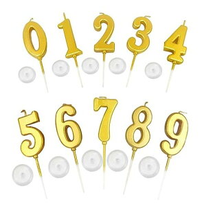 【商品仕様】サイズ:6x3.2cm、設定内容:0~9の数字計10個、ゴールドいろ採用。 【高品質の素材】これらのバースデーキャンドルは、高品質のワックス素材とPPプラスチックキャンドルホルダーで作られています...