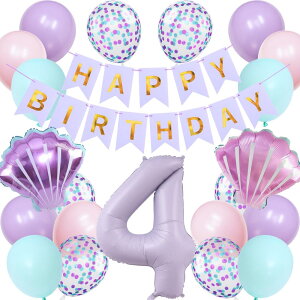 バースデー バルーンマーメイドのお誕生日パーティーお子様の誕生日を素敵に彩るハッピーバースデーバルーンセットです。パープルとライトブルーを基調とし、まるで海の中でパーティーを開いているかのようなデザインに仕上げました...