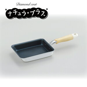 ナチュラプラスシリーズ ホワイトカラーと木柄風の取っ手がキッチンに馴染みます。軽量で毎日の料理の負担になりにくい 焦げ付きにくいダイヤモンドコート加工。玉子焼が四角くきれいに焼けます。少量の炒め物にも使えて朝食づくりに