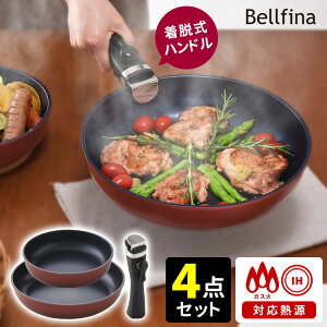 ベルフィーナ 取っ手が外せるフライパンセット IH対応。■サイズ(約):【フライパン20cm】直径210×高さ50mm 内径200×深さ50mm 底の厚さ5.6mm ハンドル取り付け時 長さ375×幅210×高さ100mm 満水容量1...