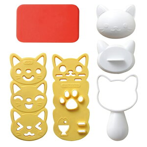 サイズ(約):[おにぎり型]幅7×奥11×高4.5cm :[海苔カッター1]幅6×奥15×高0.8cm [海苔カッター2]幅6×奥15×高1.5cm :[カッターマット]幅5.5×奥15×高0.3cm 素材:[おにぎり型]ポリプロピレ