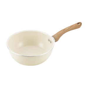 【蓋の取っ手のウッド調がポイントのおしゃれな両手鍋。】 【扱いやすいセラミックコーティングが施されています。】 【蓋には凹みがあるので菜箸などを置くことができます。】
