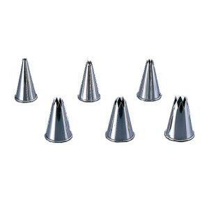 値下げしました!製菓用品SALE中★■セット内容:星型8切♯D(口寸法4mm)、♯0(6mm)、♯2(8mm)、♯4(10mm)、♯6A(13mm)、♯7A(15mm) 各1、計6ヶ■サイズ:φ32×H60〜φ38×H50mm■メーカ...