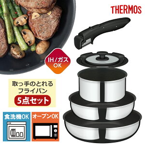 サーモス 取っ手のとれるフライパン5点セット FA KSF-5A ステンレスS ●フライパンと鍋を含むベーシックな5点セットです。 【 焦げ付きにくい 】耐摩耗性の高さと焦げ付きにくさが特徴硬質フィラ...