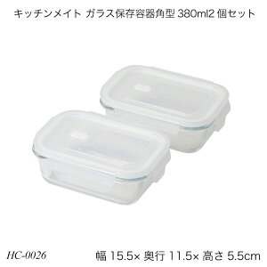 キッチンメイト、ガラス保存容器角型380ml2個セットです。蒸気弁を開ければ、フタをしたまま電子レンジOK。容器はにおい移りしにくいガラス製。