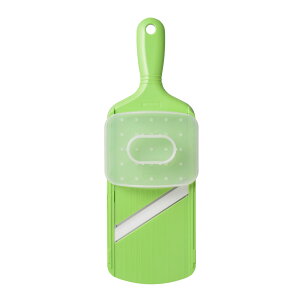 ファインセラミックスの刃なのでサビなく漂白除菌も可能。プロテクター付きなので小さいものでも安全にスライスできます。スライス動作の時、ハンドルを握る手に食材があたりにくく、作業が快適に行えます。作業時の持ち手にかかる加