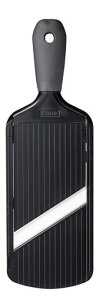 手早く千切りができる、ファインセラミック製のスライサーです。ファインセラミックは刃の摩耗が少なく、シャープな切れ味が長持ち。金気を出さないので、食材に金気をうつさず、錆びずにお手入れも簡単です。料理に合わせて食材の厚