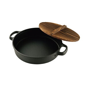 (注)取手も鉄製なので、調理中や調理後はミトンなどの鍋つかみを使わないと火傷します。 木蓋の付いた鉄鍋。 3〜4人用サイズ。 厚みのある南部鉄器は蓄熱性があり、蓄えた熱が効率よく食材に伝わり、素材の味を引き出します。 不足し