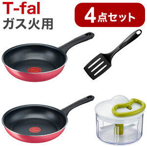 T-fal 調理道具4点セット ガス火用 20cmフライパン/26cmフライパン/ターナー/ハンディチョッパー ティファール クランベリー 15058 ※クランベリーレッド フライパン 20cm。●チタン・コーティング耐久性のある「チ...