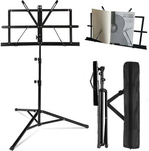 楽譜クリップ付き 譜面台 折りたたみ式 1年保証 2つの功能 読書台 卓上 筆記台 楽譜たて優れた放熱性 縦置き 超頑丈 軽量スチール製 楽譜 スペクトルスタンド 収納ケース付き ブラッ