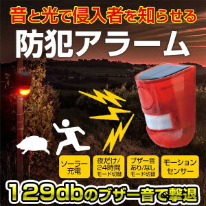 ◇ 防犯アラーム 説明 ◇ ● 普段見張ることができない倉庫や農場、果樹園などの盗難防止に、太陽光充電式の防犯アラームです。人感センサーが搭載されているので、人や動物などの動きを検知、赤いライトや129デジベルのブザー音で知ら