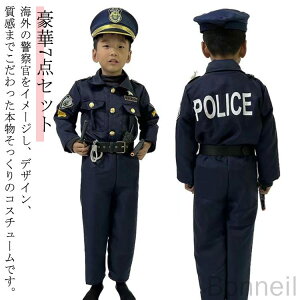 商品紹介 ハロウィン衣装 制服 男の子 子供用 警察制服 フルセット ポリス 警察官 10点セット カラー ネイビー 素材 ポリエステル セット内容 上着+パンツ+ネクタイ+帽子+ベルト+道具(5点セット)...