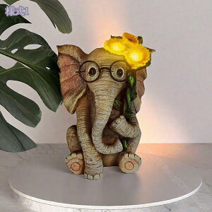 【象の置物×ソーラーライト】昼は充電・夜は自動点灯でお庭をやさしく照らす かわいい象がランタンを掲げるオブジェ型ソーラーライト。 日中は太陽光で充電し、暗くなると自動点灯。電源や配線が不要で、省エネ&エコに庭...