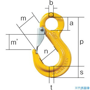 外れ止め付きフックです。 基本使用荷重(t)1 適合チェーン線径(mm)6.3 破断荷重(kN)50 寸法(mm)a20 寸法(mm)b10 寸法(mm)m22 寸法(mm)m'25 寸法(mm)n31 寸法(mm)p80 寸法(mm...
