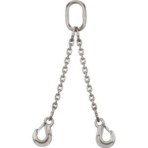 や薬品に強く、多くの作業現場にて使用いただけます。 ●特に過酷な環境での玉掛け用吊り具として。 ●象印のSUS製チェーンスリング2本吊りスリングフックタイプをDCMでは販売しております。