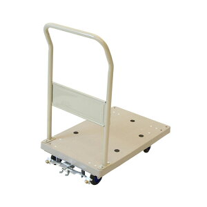 【特徴・仕様】日本製積載荷重:150Kgハンドル固定式樹脂製台車放置や自走による事故の未然防止に役立ち、ロックと解除が足踏みペダル式で女性の方にも簡単にご使用できますお客様組立品(組立説明書付)プラスドライバー、17mmレンチが必要