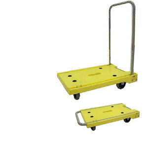 [特長]:■荷台がプラスチック製でスチール台車より約25%軽量です。■ハンドル折りたたみ部に指詰め事故の発生を抑える安全機能(特許)が付いています。■タイヤはクッション性・静粛性・耐候性に優れたブタジェンラバー(BR)を採用