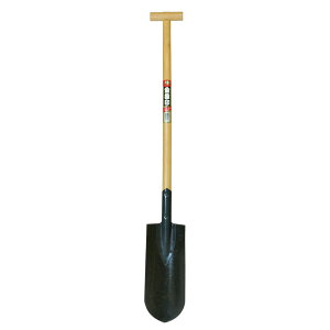 土木、造園、農業、家庭園芸など幅広く使用でき、掘る・すくう作業に最適です。一見剣先ショベルですが先端を平らにすることで掘る、掬うを両立しています。オールスチール製。幅広の足踏みとラウンドフォルムで土刺さりがよく、先端