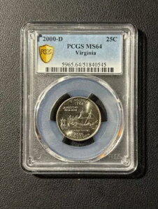 2000-D Quarter dollar Virginia 1788 PCGS MS64商品について流通/非流通額面 25セントコイン 州 クォーター種類 シングルコイン年 2000年打刻タイプ ビジネスグレード 未評価造幣局所在地...