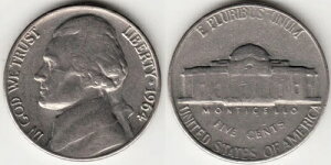 直径:21.2ミリ 重さ:5グラム 品位:銅75%、ニッケル25%。