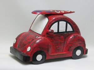 ☆★☆海外ハンドメイドアーティスト ☆★☆ ★木彫りのビートル型貯金箱★ 木彫りで中をくりぬいてます!!!! 屋根のサーフボードの部分にコイン投入口があり底部分から取り出すように作ってあります! 大きさは...
