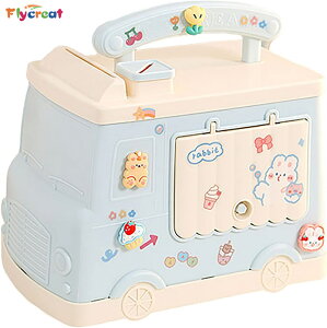 【オリジナリティ】:お家・車型の貯金箱は新登場です。配色とデザインは超かわいいです。かわいいシールも付いていて、お好きな模様にDIY可能で、面白いです。 【セット内容】:無地のボックス+シール+3Dシール+鍵×1...