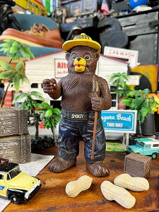 山火事を防止するために大切なことを子供たちに教えてくれる・・・・ アメリカでは誰もが知ってる人気キャラ、スモーキーベアを題材にしたキャストアイアン製オブジェです。 今から100年以上前のオモチャってこんな感じで、キャストア