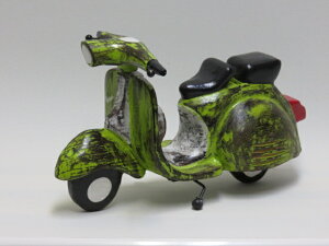 ☆★☆海外ハンドメイドアーティスト ☆★☆ ★木彫りのスクーターバイク型貯金箱★ 木彫りで中をくりぬいてます!!!! シートとシートの間の部分にコイン投入口があり底部分から取り出すように作ってあります...