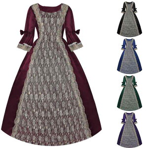 中世宮廷復古風貴婦人ワンピース マキシ丈で体型カバー効果抜群 舞台劇演出服 Halloween party クラブ衣装 コ...