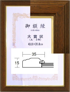 祝祭日の指定はお受けできません。 土曜日指定は可能です。 ●天然木(ガラスカバータイプ) ●名称/賞状A3(大賞) ●セット用紙寸法/439×318mm ●フレーム外寸法/4