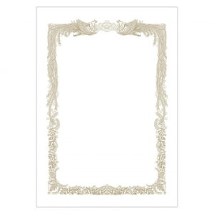 美しい金色の輝きを保つ特殊印刷をした賞状です。新たな印刷技法を用いているのでレーザープリンタやその他の出力機に対応しています。賞状用紙にふさわしい気品と深みのある風格が縁飾りに表現されています。従来からの手書きや通常印刷(凸版やオフセ...
