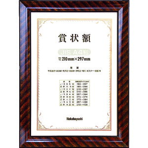 木製フレーム使用の賞状額です。●タイプ:JIS A4判●枠色:ブラウン●フレーム外径寸法(mm):340×253●収納用紙寸法(mm):297×210●厚さ(mm):14。●透明板:ガラス製。