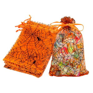 ハロウィン ラッピング 袋 お菓子 巾着袋 蜘蛛の巣 オーガンジー プレゼント 袋 50枚入り ギフト 贈り物用 小分け袋 ギフトバッグ 【セット内容】1510cm ハロウィン お菓子 ラッピング 巾着袋 50枚...