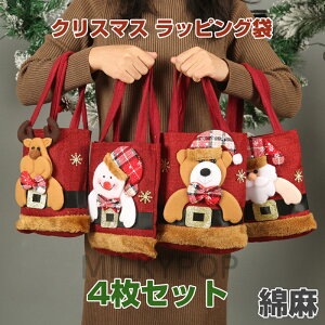 4枚セット クリスマス ラッピング 袋 お菓子 小分け 小さめ おしゃれ 2026クリスマス プレゼント用 綿麻