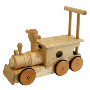 良質な国産の白木の木製 乗用玩具 グランパパが自信を持っておすすめする、日本製、白木の汽車型乗用です。つたい歩きの時は手押し車として、あんよが出来るようになったら乗って楽しめます。進むと汽笛音が『ポッポー♪』と鳴る仕様