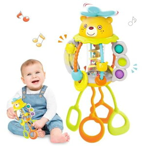【多機能な赤ちゃんおもちゃ】さまざまな興味深いアクティビティが赤ちゃんに豊かな感覚体験を提供します。回転:赤ちゃんは上にある風車のおもちゃを簡単に回転させることができます。押す:3つのシリコンバブルおもちゃは簡単に押すこ