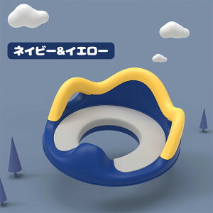 お子さまのトイレの練習にぴったりの補助便座。【柔らかいクッション付き】【水洗い可】【安心設計】自力でトイレができるよう人間工学に基づき設計。両サイドに丁度いいサイズの取っ手(ハンドル)を設置。おしっこ飛び散りを防ぎ男